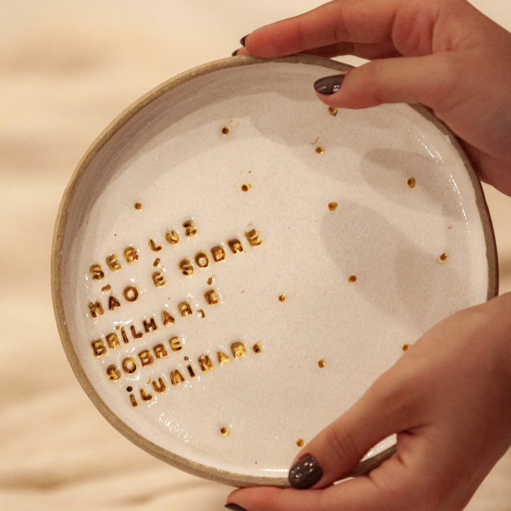 O Aparador de Cerâmica - Modelo Dizeres é uma peça artesanal e inspiradora da Naturel, feita para dar um toque especial à sua decoração e realçar suas velas favoritas. Com aproximadamente 18 cm de diâmetro e pequenas variações únicas em cada peça, devido ao seu processo feito à mão, este aparador traz duas mensagens inspiradoras: