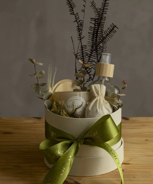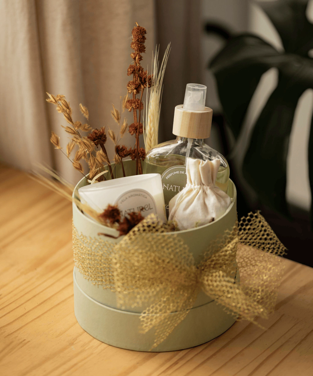 Cada item foi escolhido para oferecer uma experiência sensorial única. As flores secas não apenas embelezam, mas também trazem uma sensação de tranquilidade e conexão com a natureza. A vela aromática e o perfume criam um ambiente acolhedor, enquanto o escalda pés oferece um momento de autocuidado.