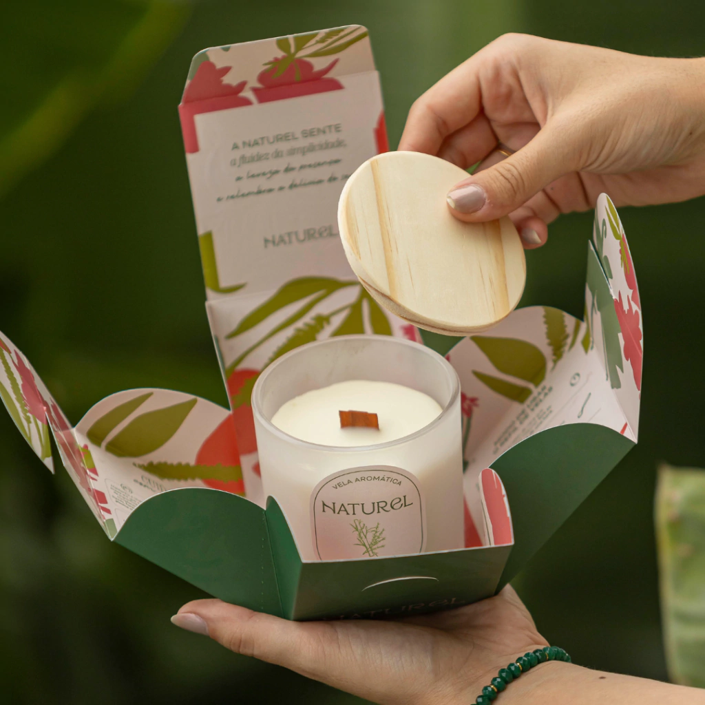 Para uma boa experiência com a sua vela Naturel, mantenha a chama acesa até que a cera da superfície fique completamente líquida, formando uma piscina até a borda, assim você evita a formação de túnel e mantém a beleza da vela por mais tempo.